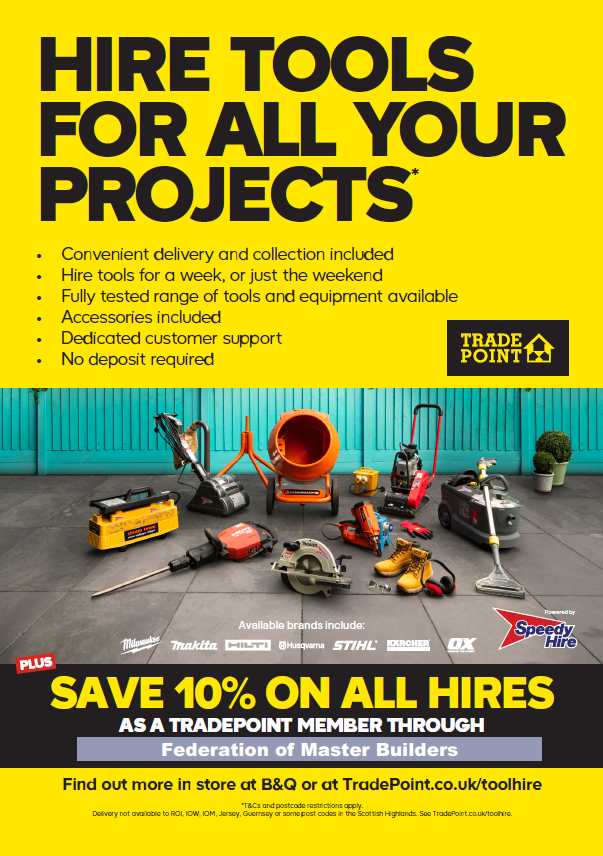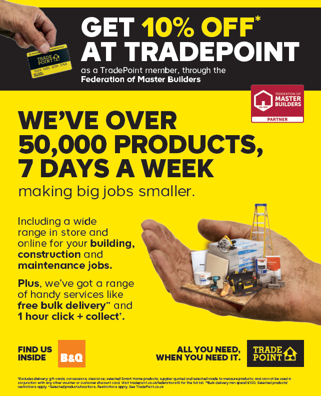 When you join the FMB you will receive a TradePoint card and you can also request more cards for your colleagues by filling in the TradePoint discount card request form. Not an FMB member? Find out more on the Become a Master Builder page.